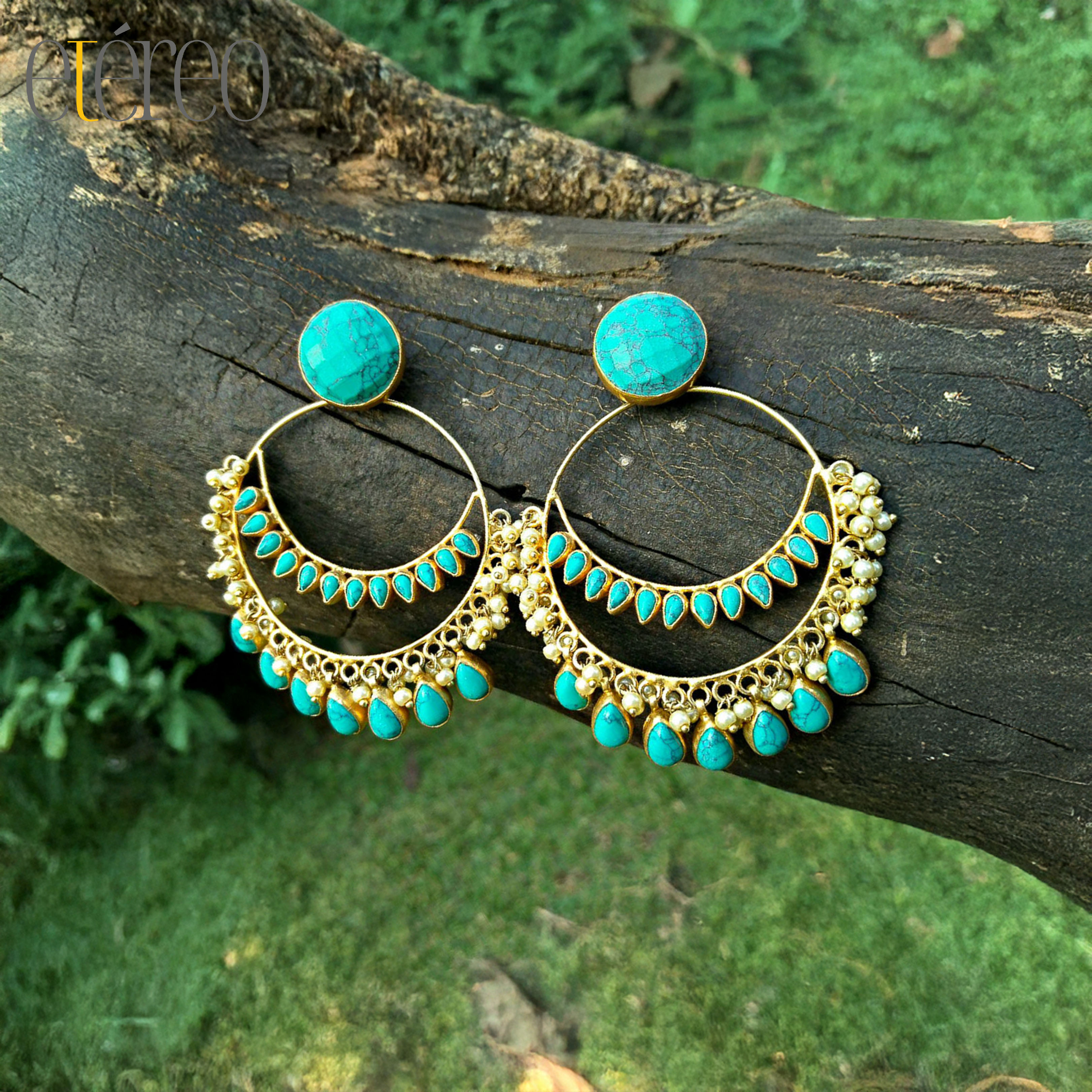 ER77DE166-Golden and Stone with Golden Leaf Chaandbaali